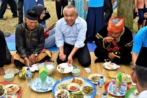 KAMPAR - Gubernur Riau, Arsyadjuliandi Rachman menghadiri undangan makan Bejambau (berhidang, red), di Objek wisata Dusun Tiga Teluk Jering, Desa Teluk Kenidai, Kecamatan Tambang, Kabupaten Kampar, Riau pada Sabtu (9/12/2017) kemarin.