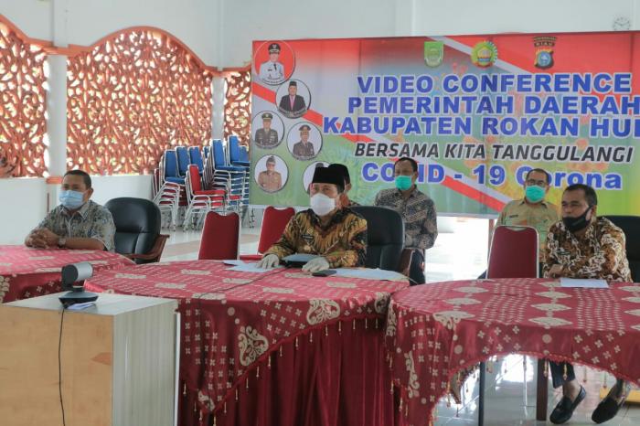 Turut hadir dalam Vicon tersebut, Kadis Kominfo yang juga Jubir Covid-19 Drs Yusmar M.Si, Kadis Perindag Rohul Drs Hen Irfan M.Si, Staf Ahli Bupati Irfan Ridho, Kadiskes Rohul dr Bambang Triono, Kadis DPMPD Rohul Margono S.Sos M.Si, Kadis DKPP Rohul Barikun SP dan Kadis Sosial dan P3A Rohul H. Sri Mulyati S.Sos M.Si.