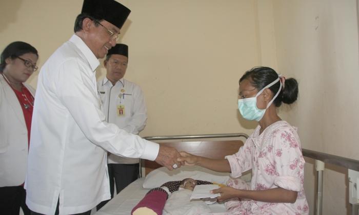 RIAUONE.COM,TEMBILAHAN,ROC - Mendampingi Bupati Indragiri Hilir, Kepala Dinas Kesehatan (Kadiskes) H Zainal Arifin SKM M.Kes menjenguk M Rafi (4 bulan) penderita gizi buruk yang kini tengah dirawat intensif di Rumah Sakit Umum Daerah Puri Husada Tembilahan, Rabu (20/4/2016).