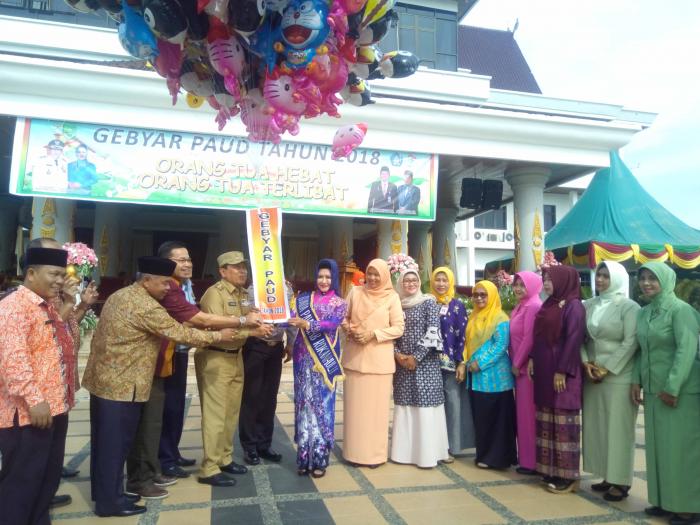 Dalam Acara Gebyar PAUD 2018, Bupati Rohul H.Sukiman bersama Bunda PAUD Rohul Hj Peni Herwati, Juga turut hadir Kepala Balai Pengembangan PAUD dan Dikmas Riau, UPT Kementrian pendidikan dan kebudayaan RI Akhyar S.Pd.M.Pd, Kasi Program Ida Ariati.S.Pd, Pamong Pelajar, Wakil HIMPAUDI Riau HS.Dinawati.S.Ag.MM, Forkompinda Rohul.