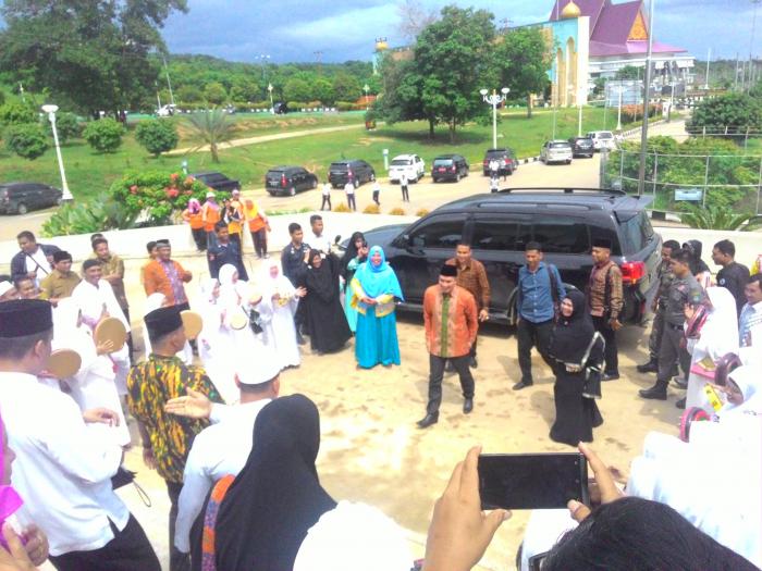 Plt Bupati Rohul H.Sukiman beserta jajaran Pemerintah Daerah Rohul, Anggota Dewan Dari Partai Golkar, tokoh masyarakat dan ratusan simpatisan berkumpul Di depan Masjid Agung Nasional Islamic Center untuk menyambut Kedatangan Suparman.
