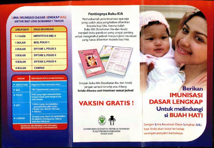 Dikatakan Munziarni, lima imunisasi dasar lengkap bagi bayi dan balita tersebut, meliputi :