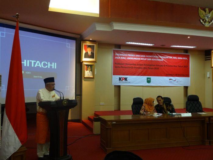 PEKANBARU - Pemprov Riau bersama KPK RI dan GIZ menggelar Diseminasi Proses dan Hasil Monitoring Program JKN, BOS, Dana Desa, Jaga Riau, Lingkungan Hidup dan Kehutanan di Ruang Rapat Melati Kantor Gubernur Riau, Jumat (8/12).