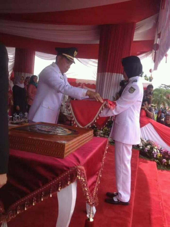 Seusai memimpin upacara, Bupati Rohul Suparman dan Wakil Bupati Sukiman melanjutkan acara memberikan penghargaan dan hadiah lomba HUT Kemerdekaan RI ke-72.