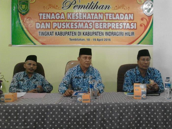 RIAUONE.COM, TEMBILAHAN, ROC - Kepala Dinas Kesehatan Inhil H Zainal Arifin SKM M.Kes yang diwakili Sekretaris Dinkes H Ridwan S.Sos membuka secara resmi acara pemilihan tenaga kesehatan teladan dan Puskesmas berprestasi tingkat Kabupaten Indragiri Hilir di aula Wijaya Kusuma Dinkes Inhil, Selasa (18/4/2016).