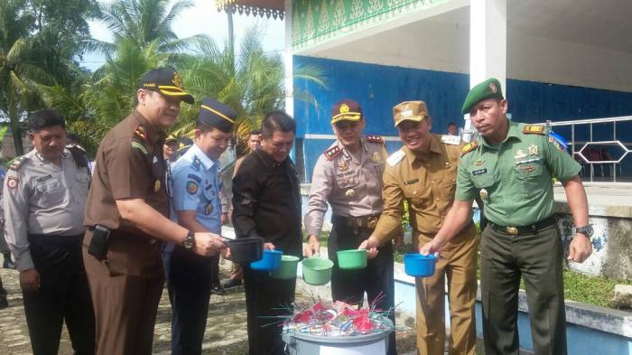 Setelah Bupati Rokan Hulu H. Suparman memberikan sambutan, dilakukan pemusnahan barang bukti dari hasil Kegiatan Kepolisian Yang Ditingkatkan (K2YD) dari tahap II TMT 15 mei hingga 18 Juni 2017.