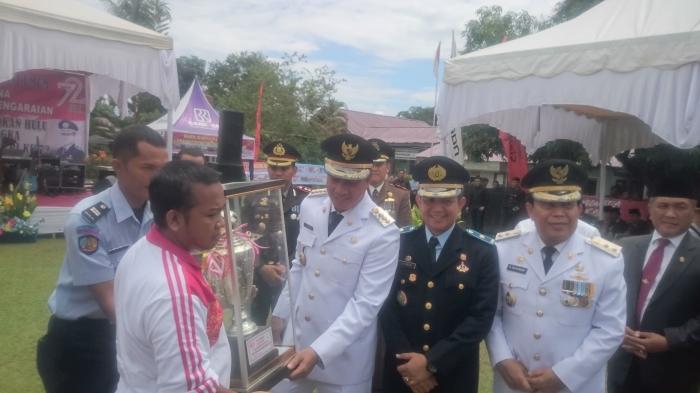 Seuasi acara penyerahan SK Remisi, serta Pemberian hadiah kepada peserta lomba lomba yang di ikuti oleh warga binaan Kelas IIB Lapas Pasirpangaraian, Bupati menyerahkan seperangkat Alat Olah raga.