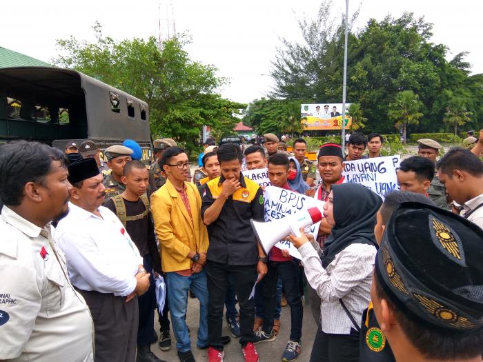 Aliansi Gerakan Membela Masyarakat Miskin (AG3M) melakukan Aksi Demo di Kantor Bupati Indragiri Hilir Jl Akasia Tembilahan, Rabu (11/1/2017) sekitar jam 10.30 WIB.Mereka menuntut pemerintah daerah (Pemda) agar mengaktifkan kembali Kartu Jamkesda.