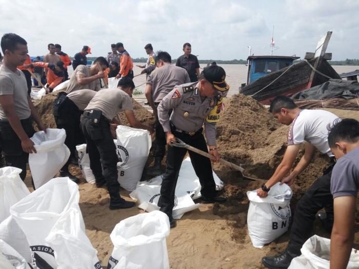 Adapun kegiatan yang dilaksanakan di lapangan adalah pemasangan cerucuk kayu, pengisian karung dengan pasir dan pengaturan arus lalu lintas, Rabu (20/06/2018), pukul 09.30 WIB.