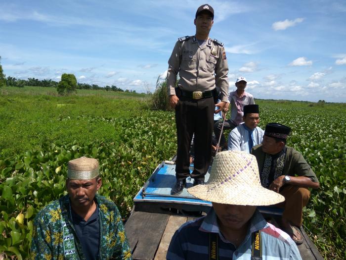Eceng Gondok Tumbuh subur di tengah Sungai, Warga Desa Sialang Panjang Kecamatan Tembilahan Hulu kesulitan melewati sungai dengan menggunakan pompong