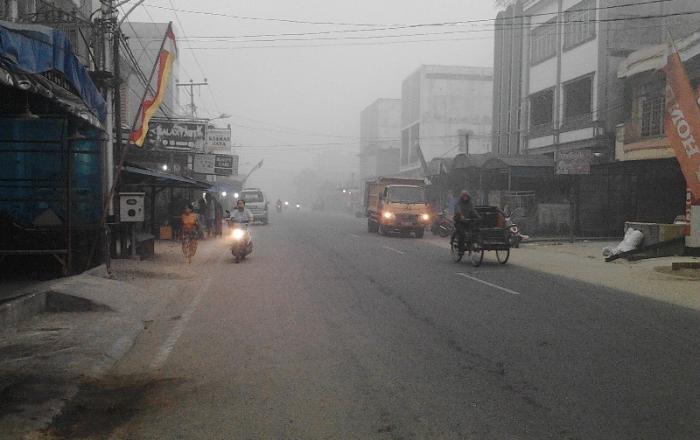 Akibat kabut asap jarak pandang warga Tembilahan tidak lebih dari 100 M. Photo diambil, Jumat, (23/10) jam 06.00 wib pagi ini.