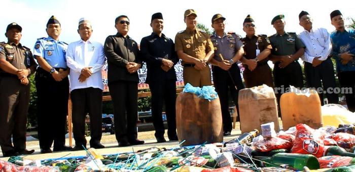 Polres Rohul Musnahkan Barang Bukti Narkotika Dan Ribuan Botol Miras