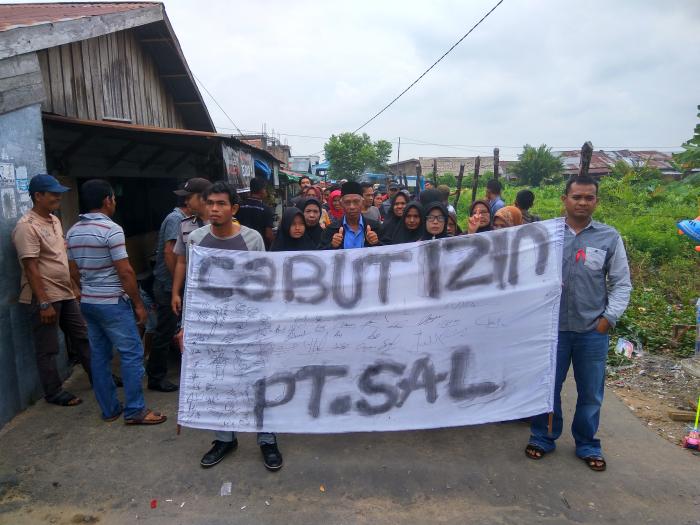 Ratusan warga Desa Pungkat Kecamatan Gaung Melakukan Aksi Demo Tuntut Pencabutan PT SAL di Kabupaten Inhil, Rabu, (11/1/2017).