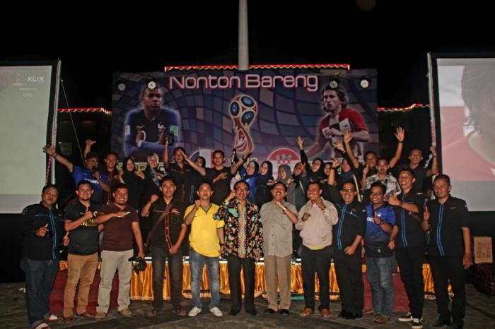 RIAUONE.COM, TEMBILAHAN - Bupati Kabupaten Indragiri Hilir (Inhil), HM Wardan nonton bareng masyarakat laga final Piala Dunia 2018, Prancis kontra Kroasia di lapangan Kantor Bupati Inhil, Tembilahan, Minggu (15/7/2018) malam.