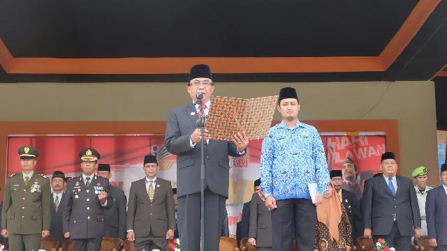 Dalam sambutannya, Bupati membacakan amanat Menteri Sosial RI. Dimana isinya menyinggung betapa berjasanya para pejuang dalam kemerdekaan NKRI. Yang mana, setiap tanggal 10 November, seluruh bangsa Indonesia memperingati hari Pahlawan untuk mengenang para terdahulu, pahlawan dan perintis kemerdekaan.