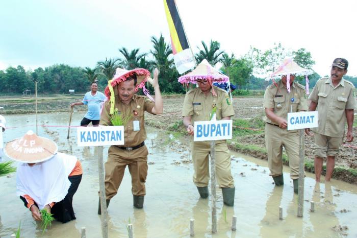 Bupati Mursini kepada masyarakat petani Desa Pulau Lancang berpesan agar produksi gabah kering giling produktivitasnya meningkat perlu diikuti petunjuk teknis pertanian yang diberikan oleh penyuluh pertanian.