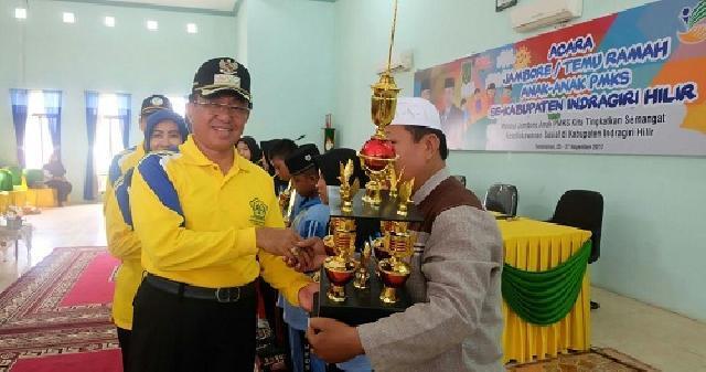 TEMBILAHAN - Bupati Kabupaten Indragiri Hilir (Inhil), HM Wardan menutup pelaksanaan kegiatan Jambore / Temu Ramah anak-anak Penyandang Masalah Kesejahteraan Sosial (PMKS) se-Kabupaten Inhil tahun 2017 di gedung wanita, Jalan Subrantas, Tembilahan, Senin (27/11/2017) pagi.