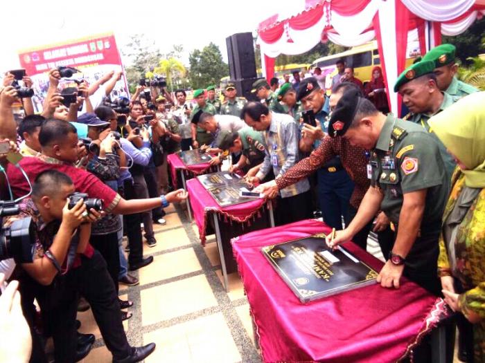 4- Sambutan sekaligus Pembukaan pelaksanaan Bhakti Sosial TNI Manunggal KB Kes Tingkat Nasional Tahun 2017 yang dipusatkan Di Kabupaten Rokan hulu, dibuka Oleh Panglima TNI yang diwakili IRJEN TNI Letjen Muhammad Setyo Sularso SIP, yang diselenggarakan pada hari Kamis 6 April 2017 di lapangan Kantor Bupati Rokan Hulu.