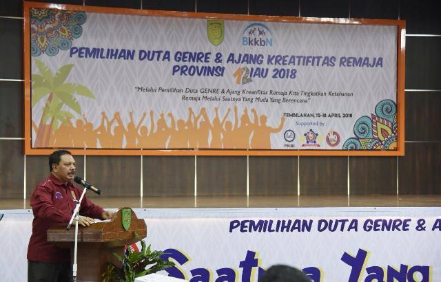 RIAUONE.COM, TEMBILAHAN - Sekretaris Daerah (Sekda) Indragiri Hilir (Inhil), H Said Syarifuddin membuka kegiatan Pemilihan Duta Generasi Berencana (GenRe) dan Ajang Kreatifitas Remaja Provinsi Riau Tahun 2018 di Gedung Engku Kelana Tembilahan, Senin (16/4/2018).