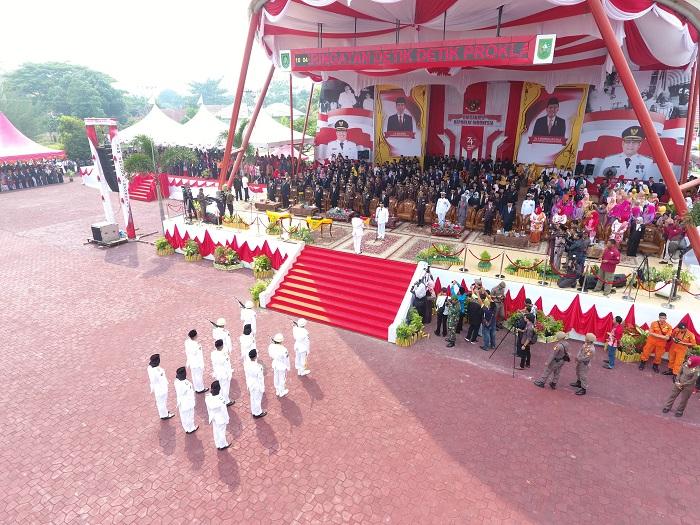 Dalam upacara tersebut Bupati Bengkalis Amril Mukminin sebagai inspektur upacara, berhasil memimpin upacara tersebut, dan Wakil ketua DPRD Kabupaten Bengkalis H.Indra Gunawan Eet didaulat membacakan teks proklamasi, saat membacakan teks proklamasi pria yang akrab disapa Engah Eet , terlihat dengan lantang dan gagah serta penuh semangat membacanya, hal tersebut sangat dirasakan di lokasi upacara .