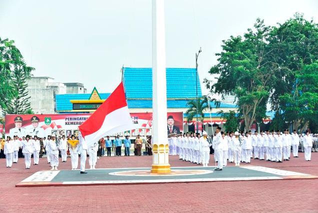 BENGKALIS, - Wakil ketua Dewan Perwakilan Rakyat Daerah (DPRD) Kabupaten Bengkalis, H.Indra Gunawan Eet, melaksanakan upacara peringatan proklamasi dalam rangka Hari ulang Tahun Republik Indonesia ke 74 tingkat Kabupaten Bengkalis. Ucapacara yang dipusatkan di lapangan Tugu Kota Bengkalis tersebut, berlangsung hikmat, Sabtu (17 /08/ 2019).