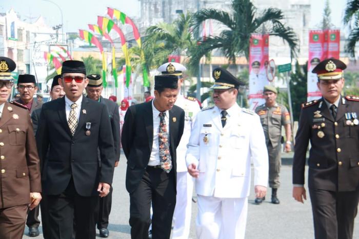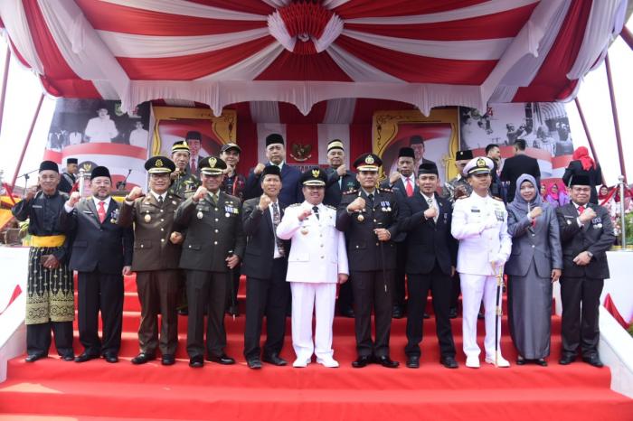 Republik Indonesia ini Wakil Bupati Bengkalis H. Muhammad, Anggota DPRD Kabupaten Bengkalis H. Zamzami dan juga Dandim 0303 / Bengkalis Letkol Inf Timmy Prasetya Harmianto, Kapolres Bengkalis AKBP Yusup Rahmanto dan Kejari Bengkalis Heru Winoto, Ketua Pengadilan Negeri Rudi Ananta Wijaya, Ketua Pengadilan Agama Bengkalis Khairiyah Roihan, Ketua Tim Penggerak PKK Kasmarni Amril, Ketua Dharma Wanita Persatuan Akna Juita, Kerapatan Adat Lembaga Adat Melayu (MKA LAM) Kabupaten Bengkalis Riau, Sri H. Zainuddin Yusuf, Ketua Majelis Ulama Indonesia Kabupaten Bengkalis H. Amrizal serta pejabat Eselon II, III dan IV di Lingkungan Pemkab Bengkalis dan juga orang tua Paskibra yang juga ikut ikut menyaksikan.