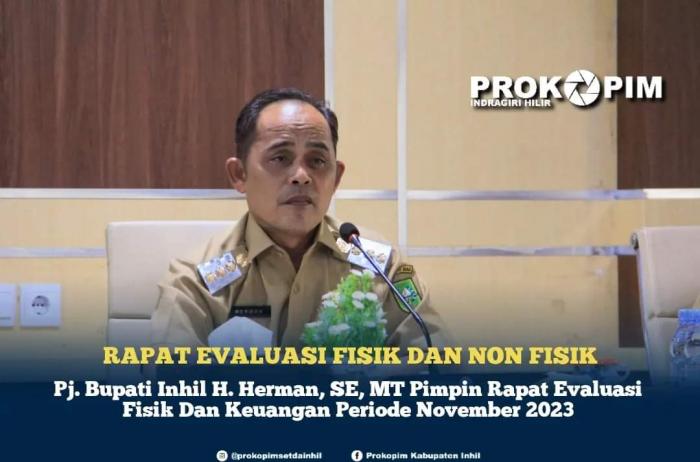 TEMBILAHAN- Penjabat Bupati Inhil H. Herman SE, MT memimpin rapat evaluasi fisik dan keuangan pembangunan kegiatan tahun anggaran 2023 periode Bulan November 2023.