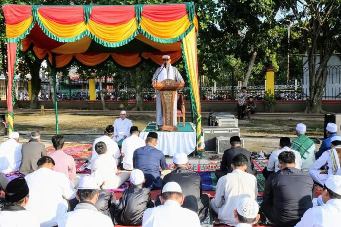 Plh. Sekda Inhil Sholat Idul Adha 1445 H di Lapangan Gajah Mada Tembilahan