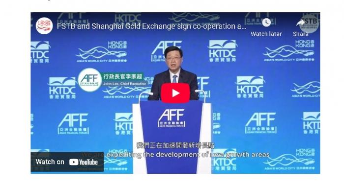 Mr Lee later witnessed the signing of a co-operation agreement between the Financial Services and the Treasury Bureau and the Shanghai Gold Exchange, marking a new milestone in deepening co-operation between the gold markets of Hong Kong and Shanghai.