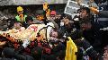 Iring-iringan ambulans dan tim penyelamat berusaha mencapai beberapa daerah yang terkena dampak paling parah.