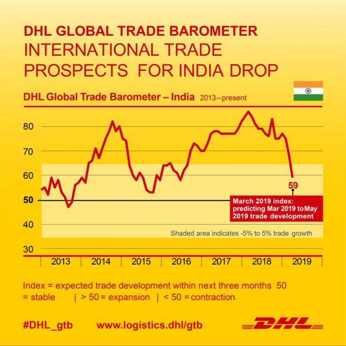 MUMBAI, INDIA - RIAUONE.com - 8 April 2019 - India's pace of growth looks set to remain the highest of the world's largest economies despite a decrease in both air and ocean trade growth, according to data from the DHL Global Trade Barometer released by DHL, the world's leading logistics company.