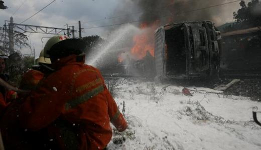Sebuah kereta commuterline bertabrakan dengan mobil tangki pengangkut BBM terjadi sekitar pukul 11.30 WIB.