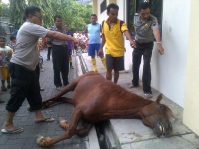 Kuda sempat kejang sesaat setelah menabrak tembok dan terjatuh. Namun tidak sampai 3 menit, kuda bernama Belo itu mati. Peristiwa tersebut menarik perhatian orang. Beberapa di antaranya ikut membantu evakuasi.