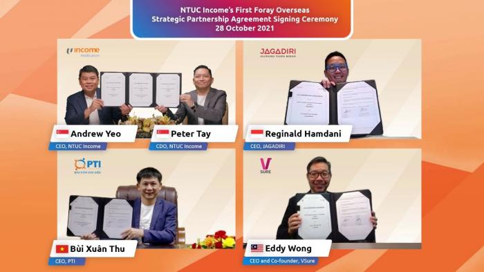 SINGAPORE - 28 October 2021 - NTUC Income (Income), a leading composite insurer in Singapore, today made its first overseas foray into three Southeast Asian markets through strategic partnerships with PT Central Asia Financial (JAGADIRI) in Indonesia, Post and Telecommunication Joint Stock Insurance Corporation (PTI) in Vietnam and VSure Tech Sdn. Bhd (VSure) in Malaysia.