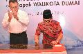 DUMAI - Walikota Dumai Drs. H. Zulkifli AS, Msi bersama Direktur Utama PT. Pertamina Patra Niaga Gandhi Sriwidodo menandatangani prasasti pembangunan tahap awal Terminal As