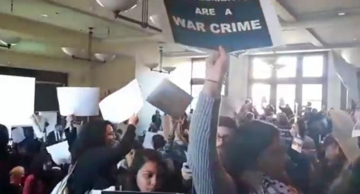 Aksi ini menolak Konjen Israel untuk New York Dani Dayan untuk memberikan kuliah umum kepada ratusan mahasiswa pada Rabu kemarin.