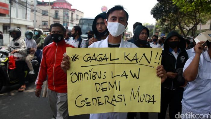 "Pelajar tolak Omnibus Law, kami keluarkan mosi tidak percaya kepada DPR, DPD, dan Pemerintah yang telah mengesahkan UU Ciptaker," katanya.