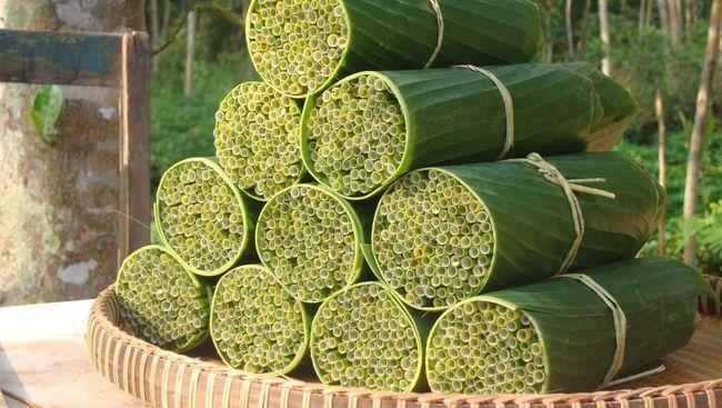 Puluhan sedotan diikat menjadi satu dan dibungkus dengan daun pisang. Tran menyediakan dua versi sedotan: segar dan kering. Sedotan versi kering dibuat dengan menjemurnya di bawah sinar matahari selama beberapa hari untuk kemudian dipanggang di dalam oven.