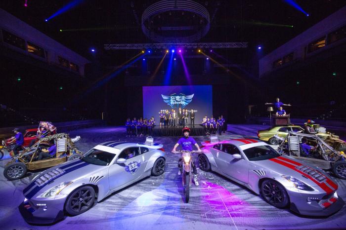 Powered by the latest electric technology, all the vehicles are bespoke and designed from scratch, and are powered by Tesla motors with a custom-designed control system. More than 150 cast, crew, creative specialists, designers and technicians -- including Guinness World Records holders -- have been handpicked for the show from nine countries around the globe.