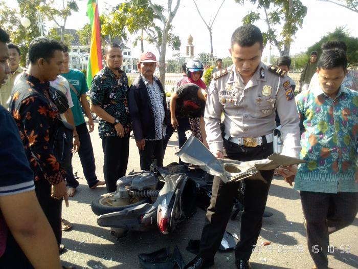 Menurut saksi mata mobil Avanza dari arah pintu gerbang Komplek kantor Bupati sedangkan sepeda motor yang ditumpangi oleh 2 orang wanita dari Komplek perkantoran, diduga Mobil Avanza mencuri jalan, lokasi tabrakan tidak jauh dari putaran jalan depan kantor Bupati, sehingga menabrak pengendara sepeda motor.