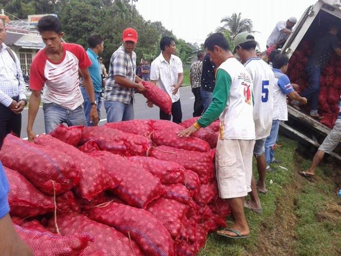"Disaat kita melakukan pemberhentian terhadap kendaraan tersebut, terdapat satu kendaraan lagi, dan kita duga terdapat dua truk lebih kendaraan mengangkut bawang merah ilegal tersebut," kata Pasi Intel kepada awak media.