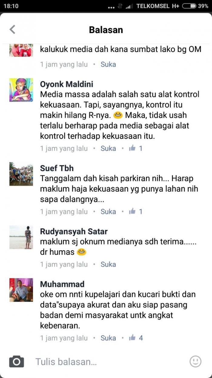 Komentar tersebut akhirnya menuai tanggapan miring dan terkesan mengolok-olok terhadap awak media. Bahkan sejumlah anggota group Facebook menuding bawa media telah menerima sesuatu dari Humas.