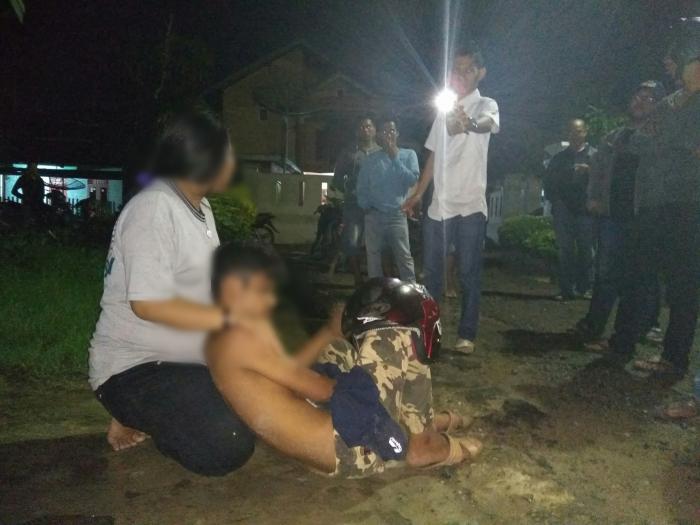 RIAUONE.COM, TEMBILAHAN - Sepasang kekasih putus sekolah Oz (17 tahun) dan De (17 tahun) tertangkap basah sedang 'maling' helm di halaman rumah warga Jalan Tanjung Harapan Gang Tanjung Rhu Tembilahan, Sabtu, (7/10/2017) malam, sekira pukul 21.30 Wib.