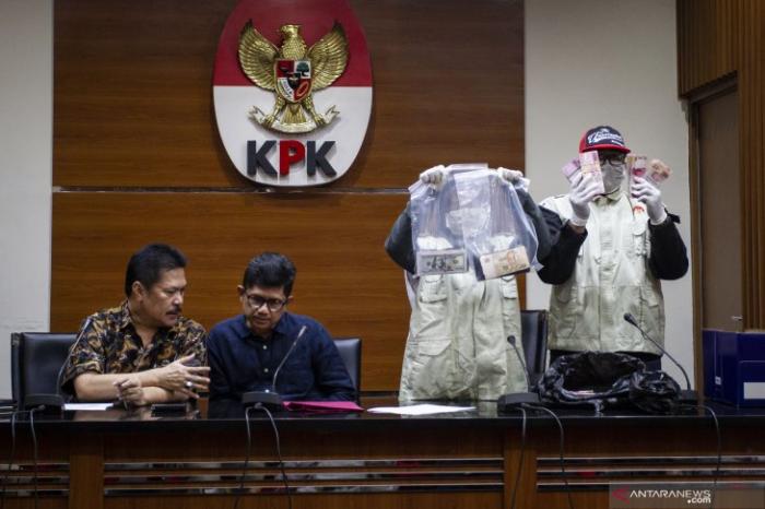 KPK menetapkan Asisten Pidana Umum Kejaksaan Tinggi DKI Jakarta (AWN), pihak swasta (SPE) dan pengacara (AVS) sebagai tersangka terkait kasus dugaan suap penanganan perkara di PN Jakarta Barat dengan barang bukti uang Rp200 juta, 20.874 dolar Singapura dan 700 dolar Amerika. (F/ant)