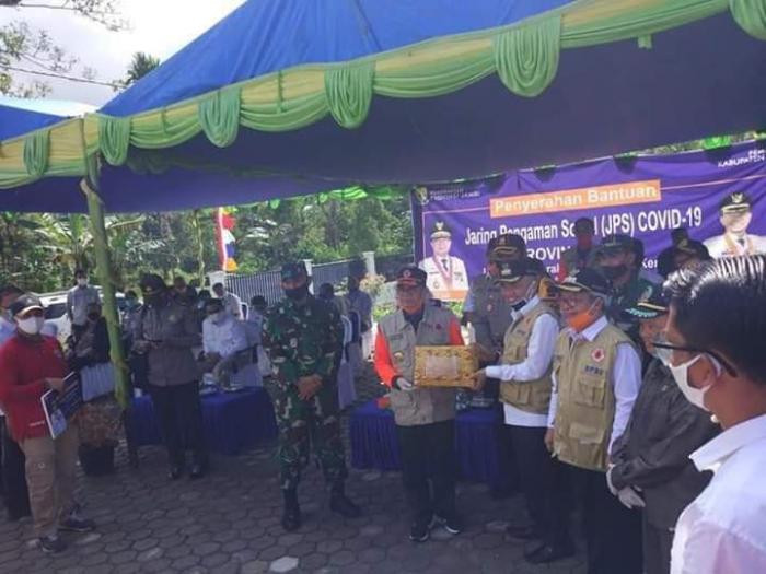 JAMBI, Kerinci - Bupati Kerinci Adirozal menyampaikan apresiasi kepada pemerintah provinsi Jambi atas bantuan Jaring Pengaman Sosial (JPS) Covid-19 Propinsi Jambi untuk masyarakat Kabupaten Kerinci yang diserahkan langsung Gubernur H.Fachrori Umar, Rabu (03/06/2020).