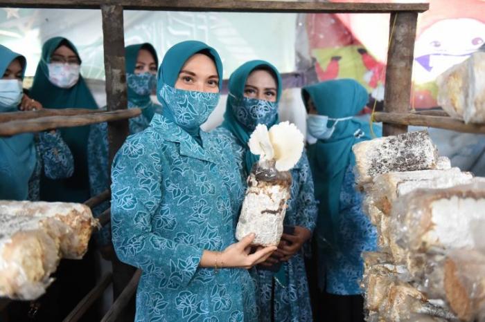 KEPRI, PROVINSI, - Pjs. Ketua Tim Penggerak (TP)-PKK Provinsi Kepri, Hj. Sofha Marwah Bahtiar melakukan kunjungan ke Rumah Budidaya Jamur, Kebun Asman (Asuhan Mandiri) Sirih Merah dan Kebun Asman Temu Lawak di Kelurahan Kampung Baru, Tanjungpinang, Kamis (15/10).