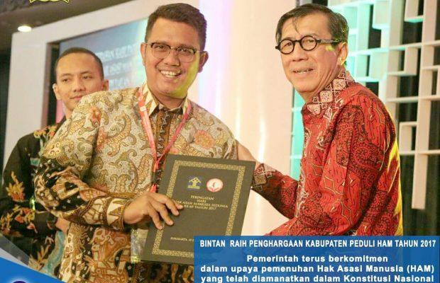 BINTAN, KEPRI, – Pemerintah terus berkomitmen dalam upaya pemenuhan Hak Asasi Manusia (HAM) yang telah diamanatkan dalam Konstitusi Nasional dan Instrumen HAM Internasional. Bertepatan dengan hari HAM sedunia yang jatuh pada tanggal 10 Desember, Kementerian Hukum dan HAM memberikan penghargaan kepada sejumlah Kabupaten/Kota Peduli HAM Tahun 2017.