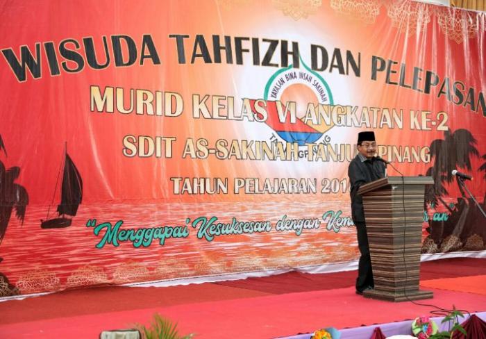 “Ketika orang bertanya dimana bumi tahfizh, dimana daerah qurani maka jawabannya adalah Kepulauan Riau,” ujar Nurdin saat membuka acara Wisuda Tahfizh dan Pelepasan Siswa kelas VI Angkatan ke-2 SDIT (Sekolah Dasar Islam Terpadu) As-Sakinah Tanjungpinang Tahun Pelajaran 2018/2019 di Aula Asrama Haji, Tanjungpinang, Rabu (1/5).