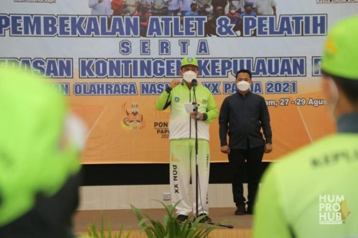 KEPRI, - Gubernur H Ansar Ahmad melepas Kontingen Kepri yang akan berlaga pada pelaksanaan PON XX Papua. Kepri mengirimkan sebayak 52 atlet untuk 16 cabang olah raga yang lolos dan berhak diikuti.