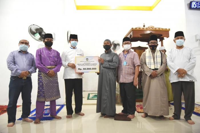 Begitu KM Seven Star merapat, Isdianto yang juga didampingi Sekdaprov H. TS. Arif Fadillah langsung menunaikan shalat Subuh di Masjid Da’watul Islamiyah. Isdianto pun menyerahkan bantuan untuk masjid tersebut.